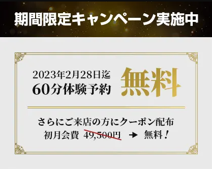 また、体験で来店した方に初月会費49,500円が無料になるクーポンをプレゼントしてくれます。